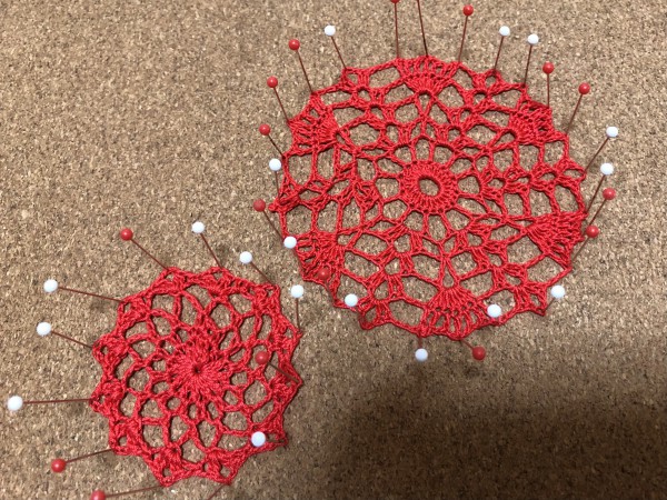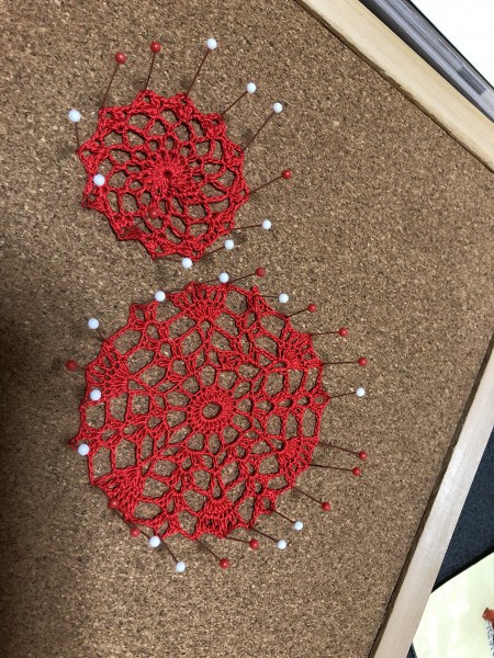 赤い糸で小さく仕上げて、硬くなる様に糊付けしました。