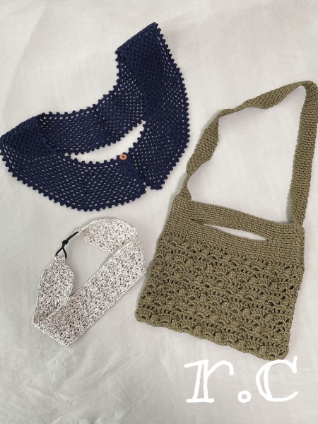 今年4月から通っている編み物の学校に提出した課題作品たちとシンプルイズベストな円座を載せてみます(´ω`)
