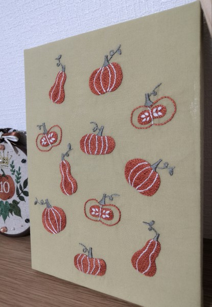 | 樋口愉美子のステッチ12カ月より ハロウィンパンプキン 今回パネルはダイソーの貼れるボードをカッターで切り、縁の所2センチだけ二枚重ね貼りして厚みを出しました。 いつも刺繍しているうちにシワになってしまうのが悩みです。モチーフとモチーフの間など、アイロン等で誤魔化せない所が困ります。 パネルに貼るとき伸ばしながら貼ったつもりなんですが、裏の接着芯がパネルの両面テープにくっつきやはりシワに… やはりタッカーで貼る方がいいのかなぁ… 刺繍の仕方に問題があるのか、どなたかシワがよらず綺麗に刺繍するコツなど教えて頂けたら嬉しいです… |