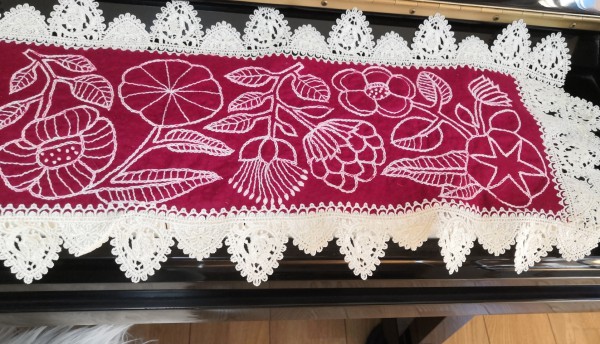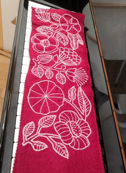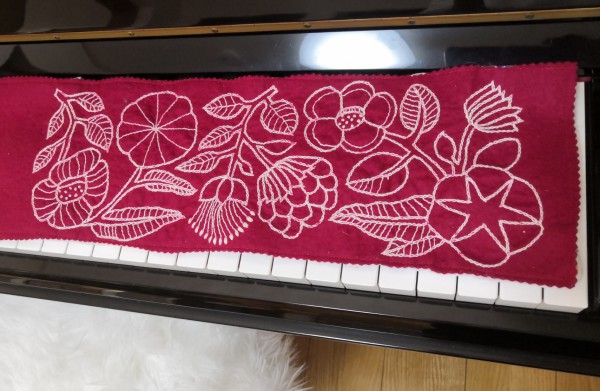 樋口愉美子さんの図案ですね!ピアノカバーに刺繍するなんてとても素敵です(*´-`*)