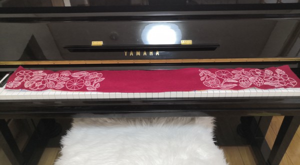 | 生地種類と使用量 | ピアノに備え付けの赤いキーカバー |