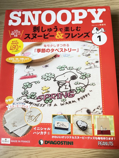 | ディアゴさんからテスト販売されている、刺しゅうで楽しむスヌーピ&フレンズのゲット方法を教えていただき、創刊号を刺し終わりました(^-^)/ 基本のステッチを組み合わせただけの刺しゅうですが、手書き感を出すのがめちゃくちゃ難しかったし、黒糸は毛羽立ちやすいのか扱いが大変でした(´・_・`) 次は今まで使ったことの無いマジックシートやパンチニードルが付録なので楽しみです。 |
