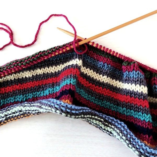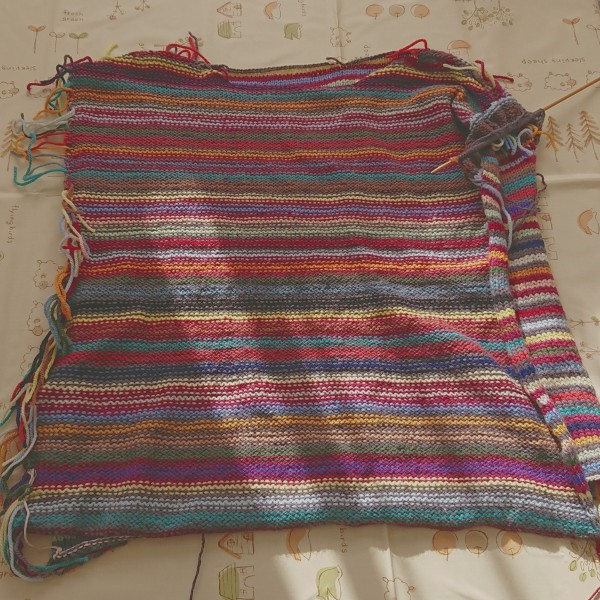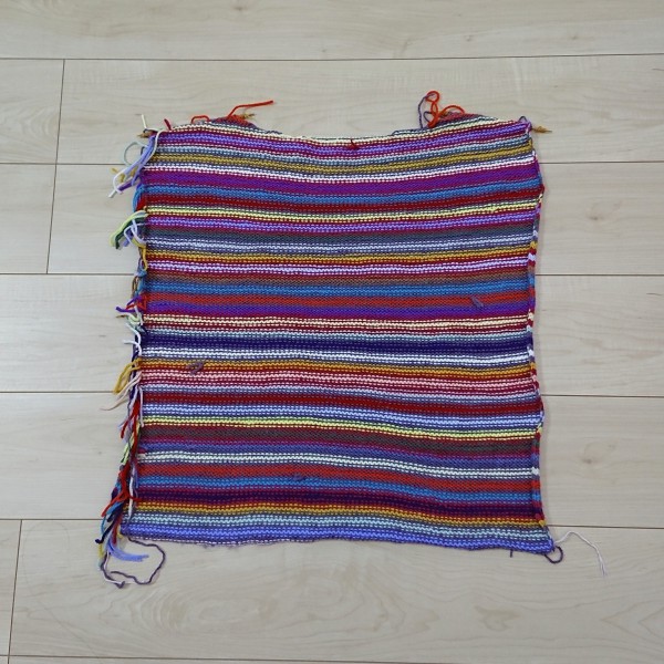単調ですが、色が変わるのでTVを見ながら楽しく編めます♪