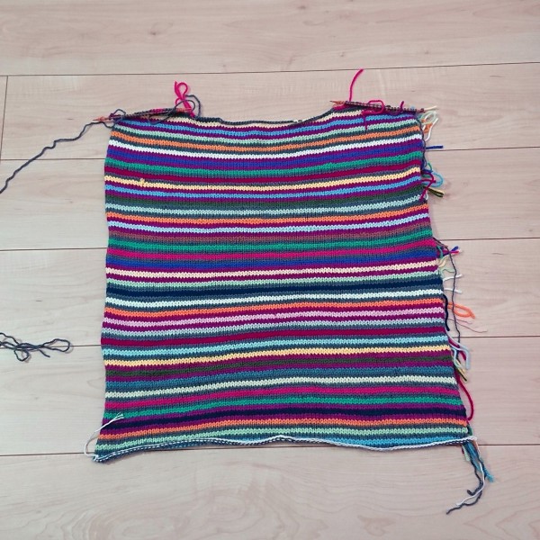 | 残り糸でセーターを編みます。 長いこと小物しか編んでいなかったのに突然着るものが編みたくなりました。 家にある糸を探したら、まとまった量の糸がなかったので 色違いでたくさんあった糸を合わせて部屋着用のマルチカラーのセーターを編むことにしました。 家で着るものなので色合わせなどあまり気にせずに気楽に編もうと思います。 すべてメリヤス編み、身ごろは増減なしで四角く編む予定です。 へんてこなものになるかもしれませんが、とにかく完成が目標です(^^♪ |
