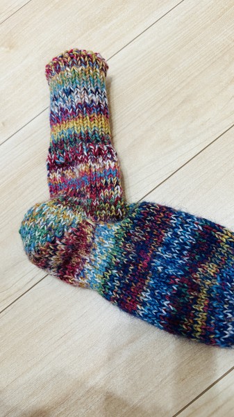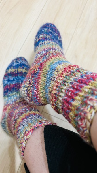 靴下2足目にして猪谷さんの靴下に挑戦しました!!最初の片方は何度も数え間違えてほどいたので、糸がボロボロにwwでももう片方はすんなり出来ました!とてもがっしりしていてめーっちゃ暖かいです!