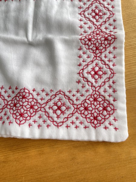 刺し子 小物 spicaさんで購入した刺し子ハンカチキットの色違いを作りました(*'▽'*)♪