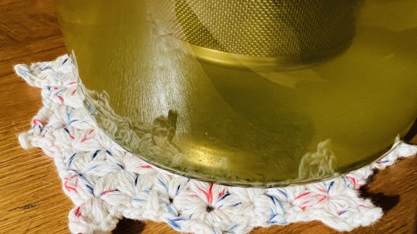 ティーポットにジャストなサイズ。細い糸でも厚みが出るので鍋敷きとか、太い糸で大胆に編んでラグとかいけそうです。