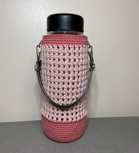 ドリンクホルダーを作りました。ドリンクボトルやペットボトルにピッタリのサイズです。YouTube LiLi nanaさんのペットボトルホルダーの模様を参考にしました。
