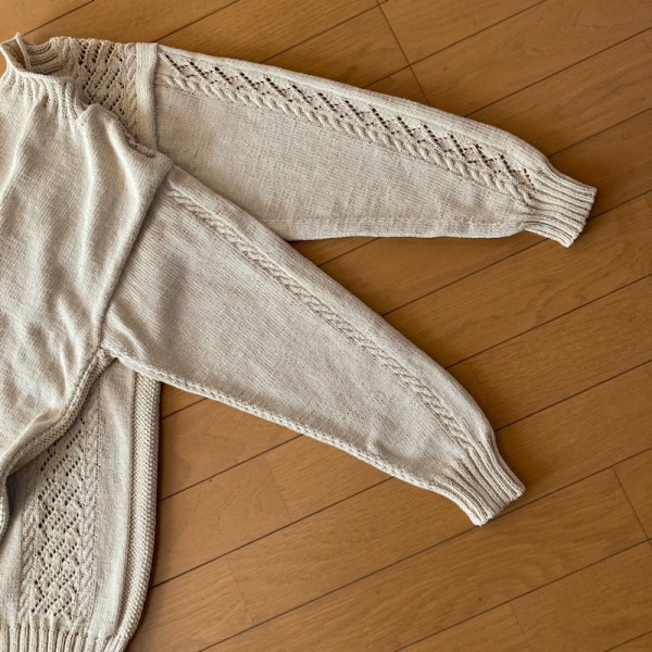 | 仕上がりサイズ | 着丈66㎝ 身幅50㎝ 袖(拾い目部分から)46㎝ |