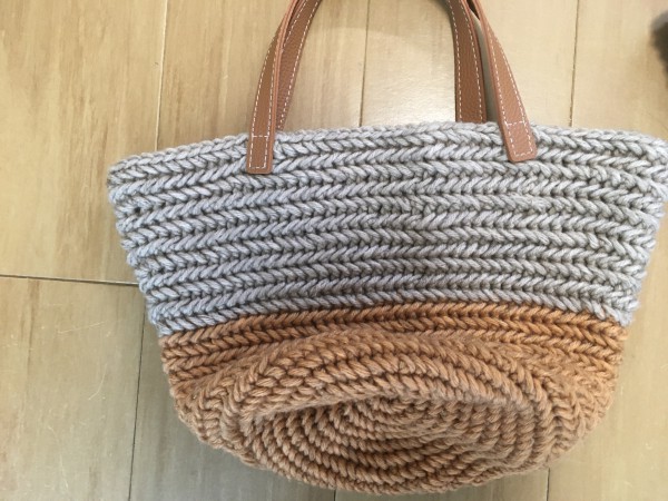 | Ha-Naさんのヘリンボーンクロッシェでマルシェバッグを編みました 持ち手は市販の物を使用してます ヘリンボーンクロッシェは/になる糸を長めに引き出した方がいい感じです |