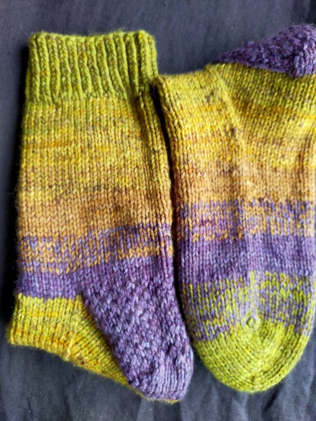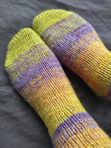 つま先とかくるぶし部分がどうしても緩くなって落ちてはいないのに穴が空いたようになったり、糸替えをもっと上手くやりたかったり、糸始末をもっと・・・と、課題は盛りだくさん。