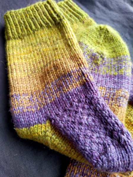 かかと後部分に一目ごとに滑り目を入れたらポコポコとしたかわいい模様に!
