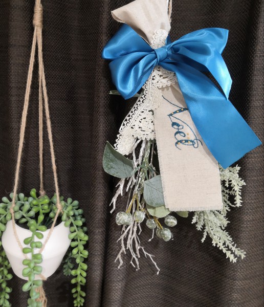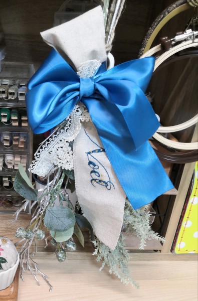 | インスタで見つけたレタリング刺繍画像をヒントに、レタリングフォントを探してはぎれ布に刺繍してみました。 (福田綾さんという刺繍作家さんのアルファベット刺繍です。デザインもどれも素敵すぎて本を購入しようと思っています☆) 青いリボンの色も刺繍糸の色も真似っこで、一緒にダイソーのフェイクグリーンに結んでスワッグに。 いつか使いたかった金のディアマンテ刺繍糸を初使用 |