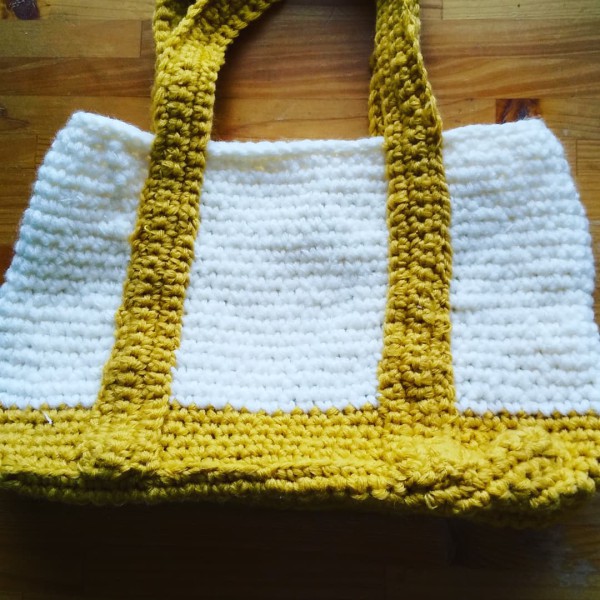 ダイソーのシフォンムースと言う毛糸で作りました。ちょっと真っ直ぐに編む事ができませんでしたが色と大きさが気に入っています