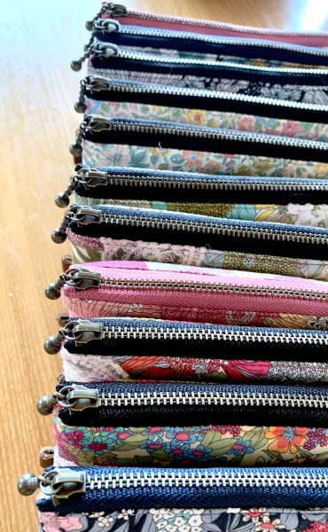 リバティ生地のポーチ11個。少々レースをデコりました。メガネケースにぴったりサイズです。やっぱりリバティ生地はかわいいです♪