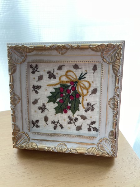 額を探していたけど、サイズの良いものが見つからず、Seriaで見つけた額に入れたら、ギリギリだけど刺繍が可愛いので今年はこれで楽しみます!