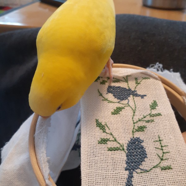 刺繍も鳥さんも可愛いですね(^^) インコがお好きなんですね