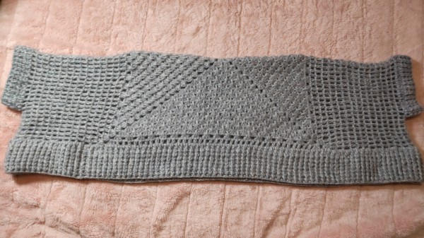 スパイクグラニーで正方形に編んでいきましたが、腕のところは軽くしたいので、方眼編みで左右に伸ばして長方形にしました。