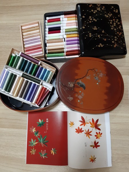 日本刺繍の本からワンポイントとなるものを選びました。中心から18cm位のところから刺すといい具合に模様が出ます。