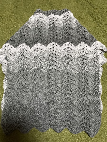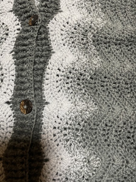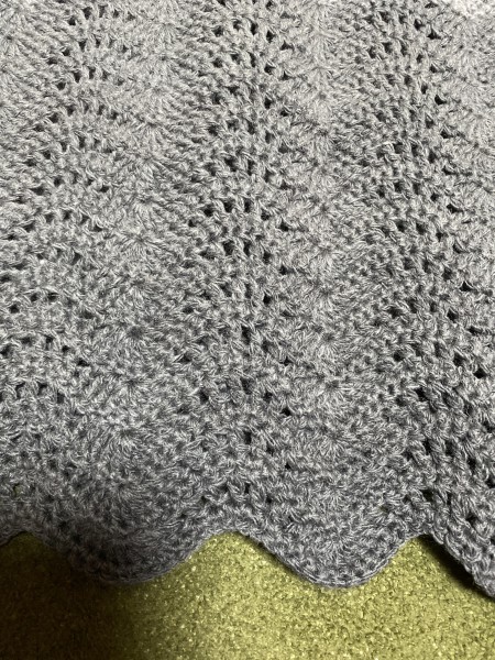 cotosonさんの真っ直ぐ編みのベスト編みました。長い道のりでした。出来上がってよかった。