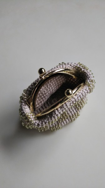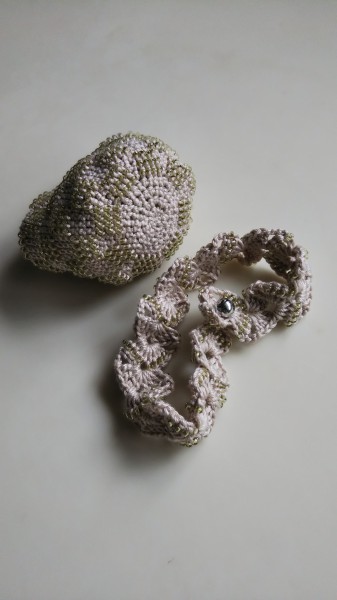 市松状にビーズを入れました。余った材料でブレスレットを作りました。