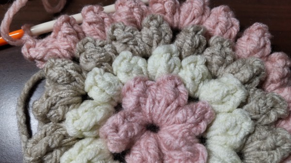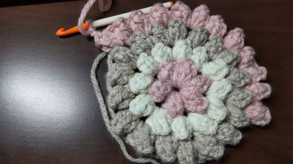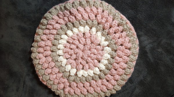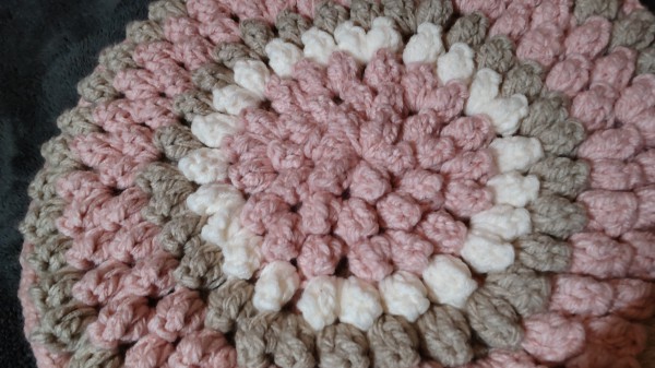 と思っていたときに、You Tubeでパプコーン編みの座布団発見。