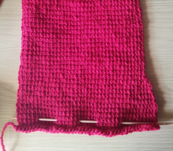 アフガン編みで編み始めました。