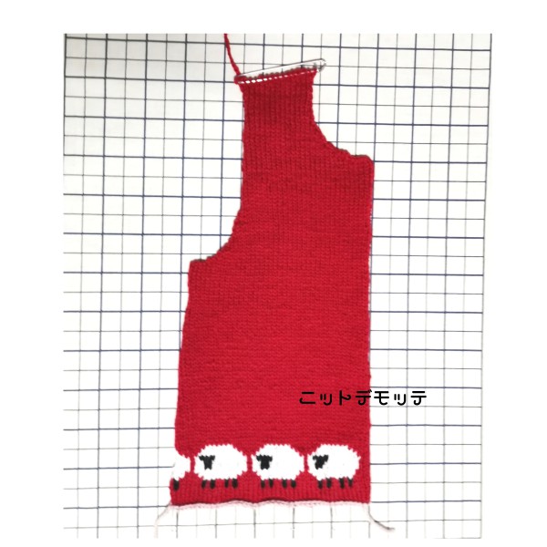 羊さんの編み込み模様は脇をとじた時に