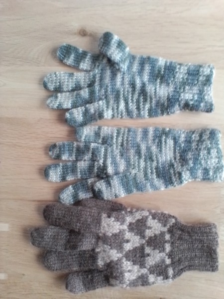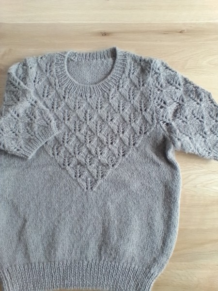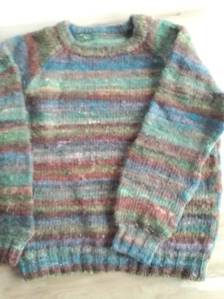 虹色のセーターはトレーナーみたいにラグラン袖にしました。半袖のセーターはカーディガンとセットのはずでしたが出来ていません。昔はフリースなんて無かったからセーターを日常着ていたなぁ…。