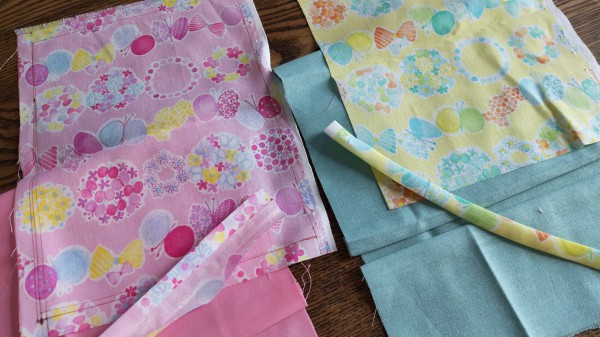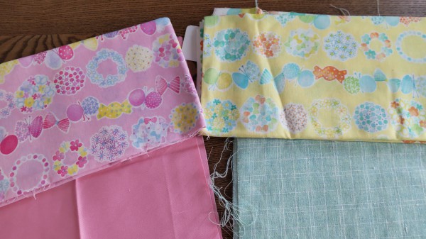 表布、共布で紐、裏布はティッシュ入れを作るためにパーツが2つあります。