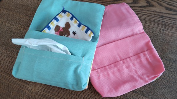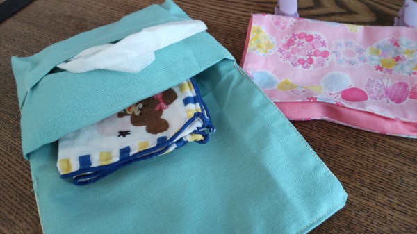 | 娘たちに移動ポケットを作りました。 ティッシュとハンカチが入る、シンプルなタイプです。 |