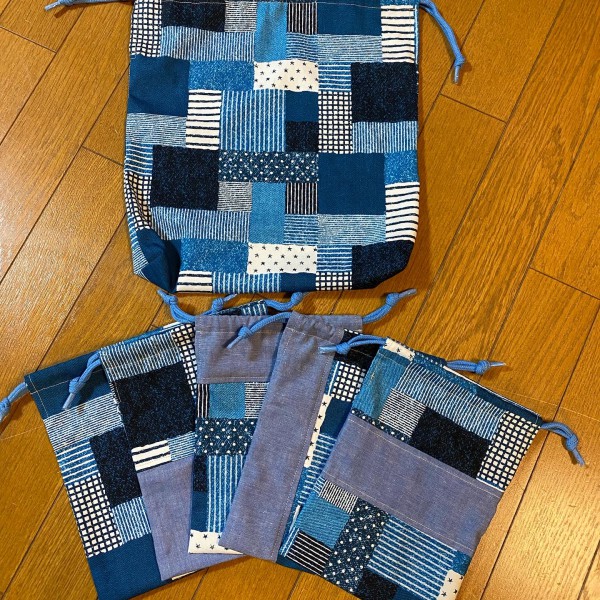 ランチョンマット、給食袋は5枚違う模様で作りました。
