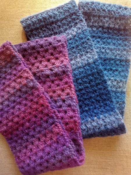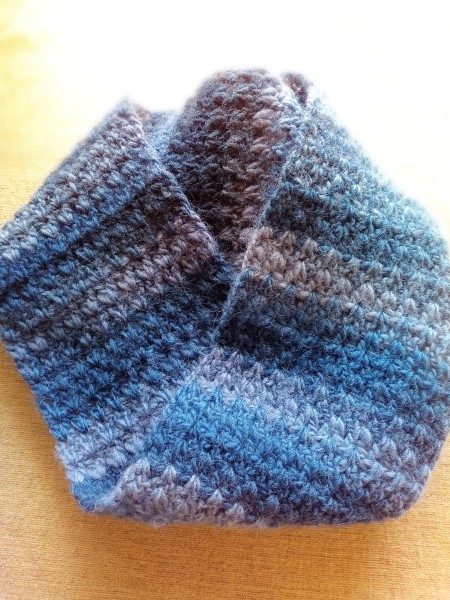 毛糸のグラデーションがステキだったので、軽めのスヌードを色違いで一気に4本編み、手元に残った2本です。