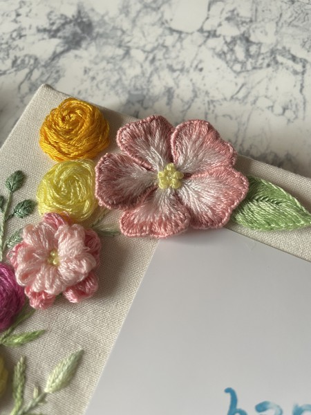 私も立体刺繍は途中で挫折して、平面刺繍ばかりしてましたがふと思い立って再チャレンジしてみました。