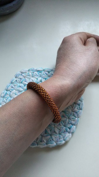 ビーズを編み込んだブレスレットです。