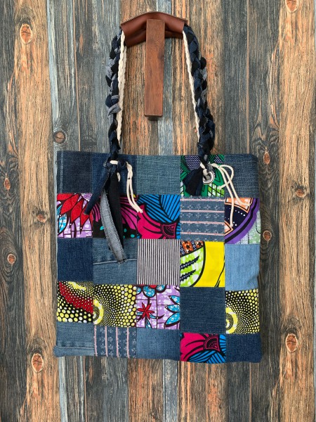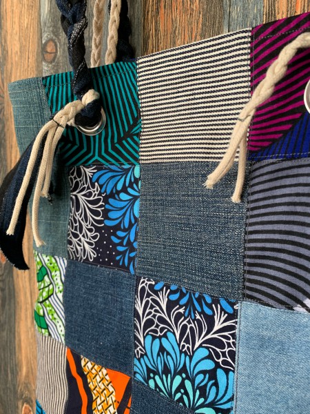 アフリカの生地とデニムを使ったトートバッグです。