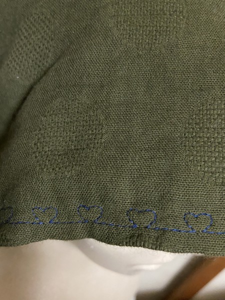 地味目のカーキ色なのでハートの刺繍を控え目に縫いました。