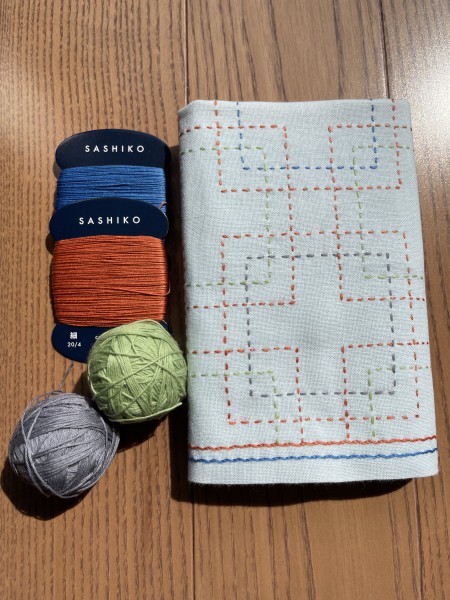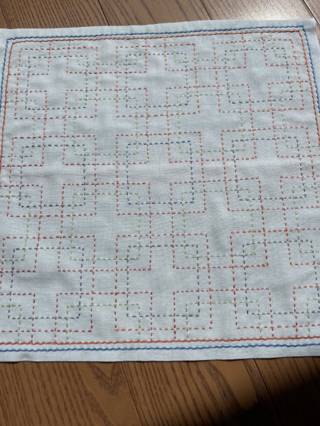 まいでぃあさんのプレゼント企画で頂いたカラー晒し角寄せ模様を刺しました!