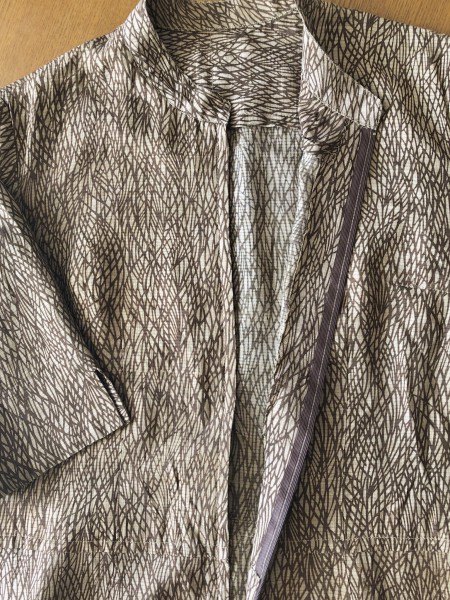 着脱が楽で涼しいワンピースか欲しくて作りました。祖母の着物の絽の生地を利用して、長めの丈にしました。