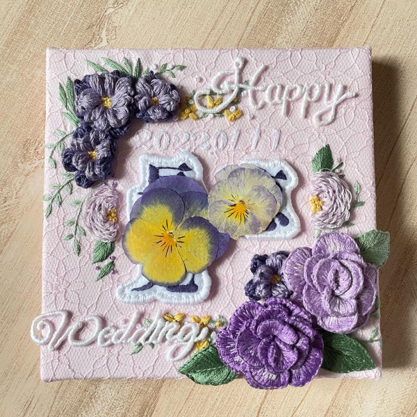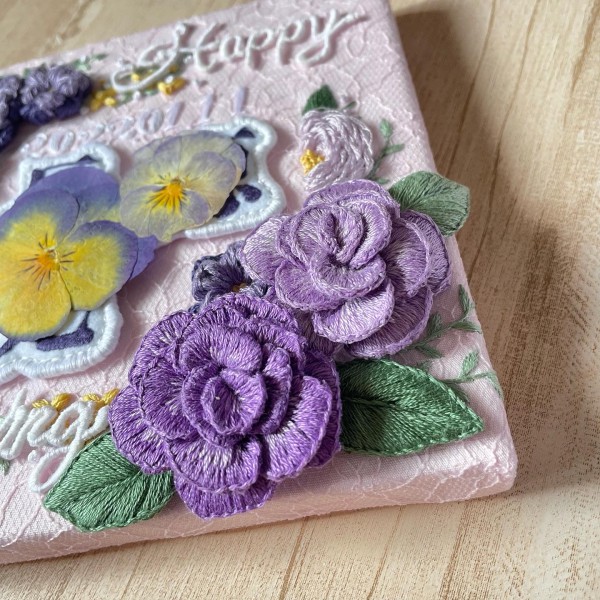 直接布に刺繍したものもあれば、立体刺繍を作成して組み合わせました。