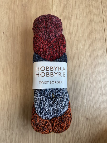 ホビーラホビーレのツイストボーダー糸でトートバッグを作りました。レシピ通りに細編みでスイスイ仕上がり、糸が余ったのでタッセルとコースターも作りました。