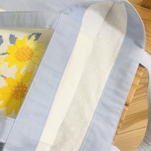 クロスステッチ 刺しゅうしたものをバッグに仕立てました。