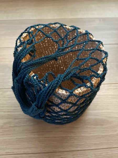 ハマナカのイトコバコさんのキットを使って、メッシュのカゴバッグを編みました。持ち手カバーはレシピでは中のカゴ部分と同じエコアンダリアで編むようになっておりましたが、メッシュを編んだコットンの糸に変えてみました。どちらでも可愛くなるな、と思いました。