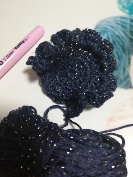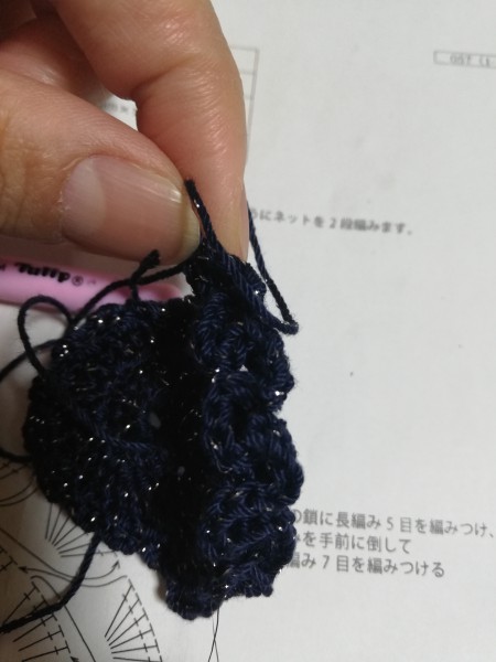 糸がネイビーなので、なかなかフリルのかわいさが伝わらないって言う;
