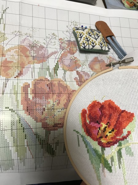 葉や茎のハーフステッチ、1本どりで刺した箇所のグラデーションがきれいに出て嬉しかったです