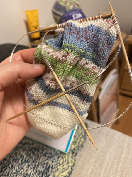 つま先編み終わって甲の部分を編んでるところ
