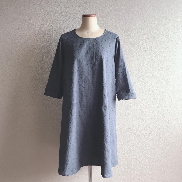 ふくれ織りコットンで、定番のワンピースを制作しました。