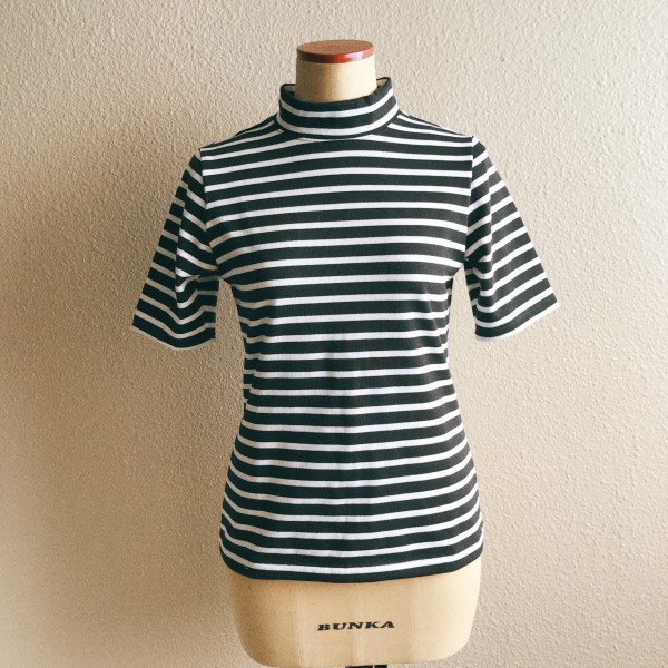 160cm幅2mのボーダーカットソーで、半袖ハイネック1着とオフネックスタンドカラー2着出来ました!