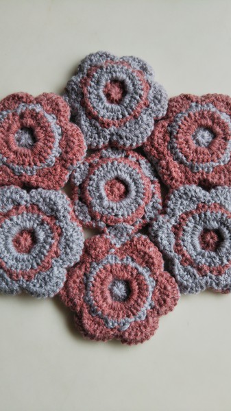 1つ前の作品を、六角形に変えて、ドイリーにしました。残り糸を全て使いきりました。