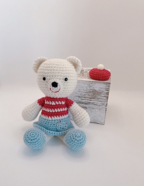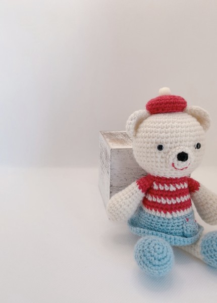 シロクマの女の子に夏らしいマリンスタイルの服を着せてみました。
